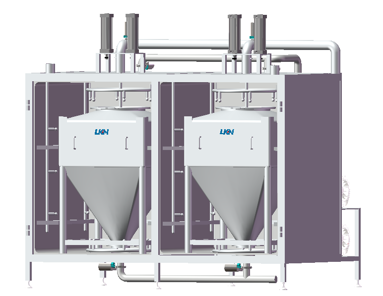 優(yōu)康恩自動化料系統(tǒng)用于對粉料和其它配料進(jìn)行乳化和水化的混料系統(tǒng)設(shè)備。其中真空混料機(jī)可在密閉真空容器下進(jìn)行高速剪切乳化混合綜合產(chǎn)品、各種粉末和液體等,每小時化粉量可達(dá)到3T-5T。優(yōu)康恩自動化料系統(tǒng)可利用真空作用將配料輸送到化料設(shè)備中,省去了操作工承擔(dān)這項(xiàng)繁重工作的需要。
